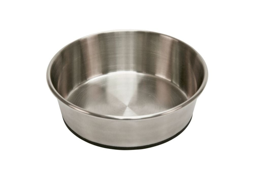 Metāla bļoda ar neslīdošu gumijas apakšu.