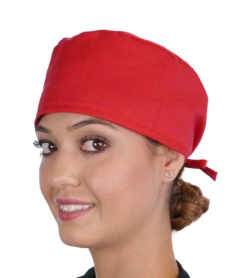 Klasiska kokvilnas materiāla cepure ķirurgiem – ar sviedru lenti, sasienama aizmugurē.