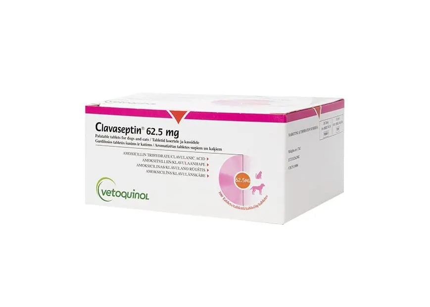 Clavaseptin 62,5 mg aromatizētas tabletes suņiem un kaķiem.