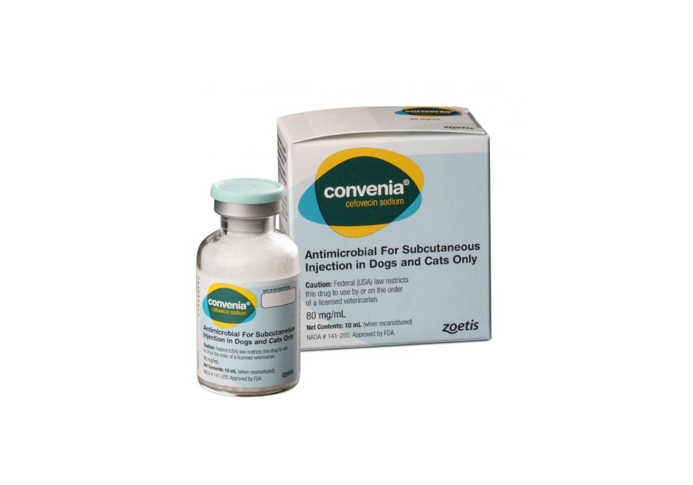 Kaķi: Ādas un mīksto audu abscesu un brūču ārstēšanai, kuru ierosinātāji ir Pasteurella multocida, Fusobacterium spp., Bacteroides spp., Prevotella oralis, beta- hemolītiskie streptokoki un/vai Staphylococcus pseudintermedius. Escherichia coli izraisītās urīnceļu infekcijas ārstēšanai. Pēc vienreizējas Convenia injekcijas pretmikrobā iedarbība saglabājas līdz 14 dienām ilgi.