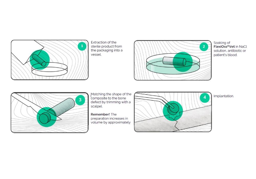 FlexiOss Vet biomateriāls kaulaudu aizvietošanai