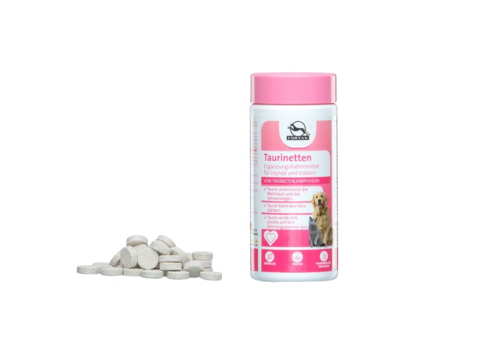 Taurīna papildbarība kaķiem un suņiem. Taurīns ir neaizvietojamā aminoskābe, kuru kaķa organisms nespēj sintezēt pats. Barība var nesaturēt visu nepieciešamo taurīna daudzumu, termiskās apstrādes dēļ, tādēļ ieteicams lietot taurīnu saturošu papildbarību.