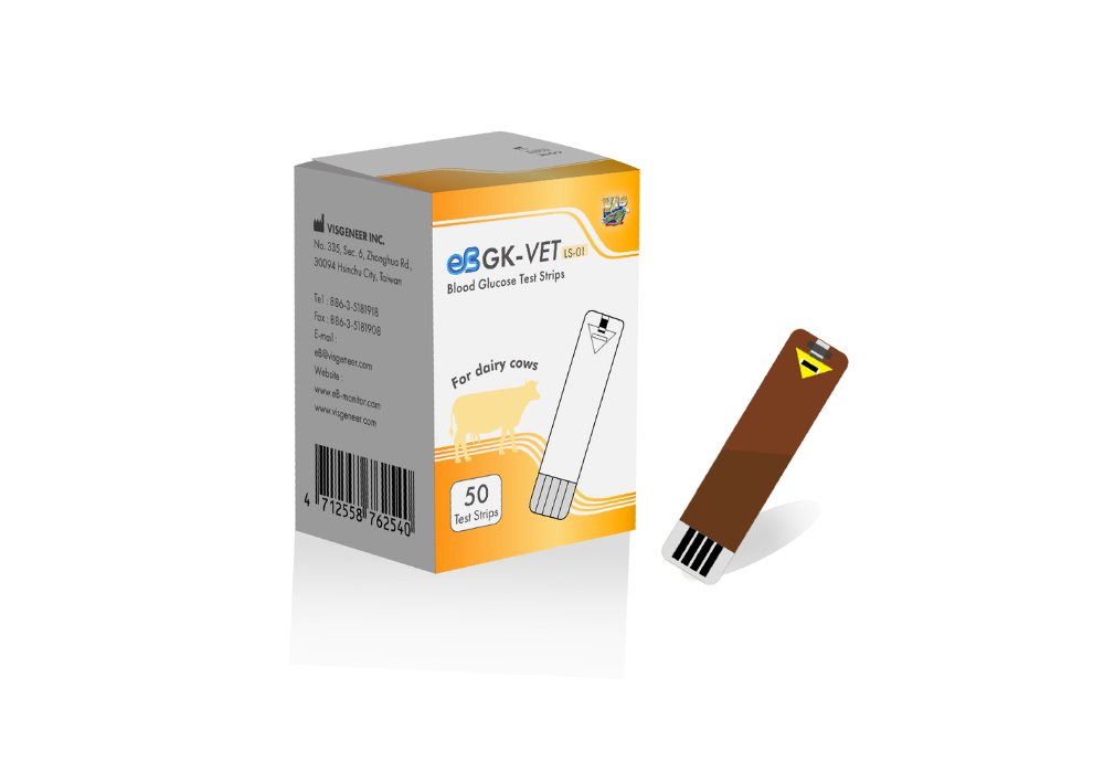 Testa stripi glikozes līmeņa noteikšanai asinīs slaucamām govīm. Iepakojumā 50 gab.