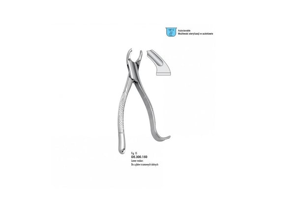 Nerūsējošā tērauda ekstrakcijas knaibles suņiem – apakšējiem molārajiem zobiem.