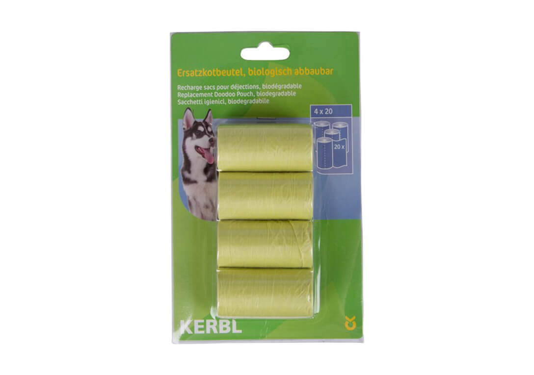 Bioloģiski noārdāmie maisiņi fekāliju savākšanai.