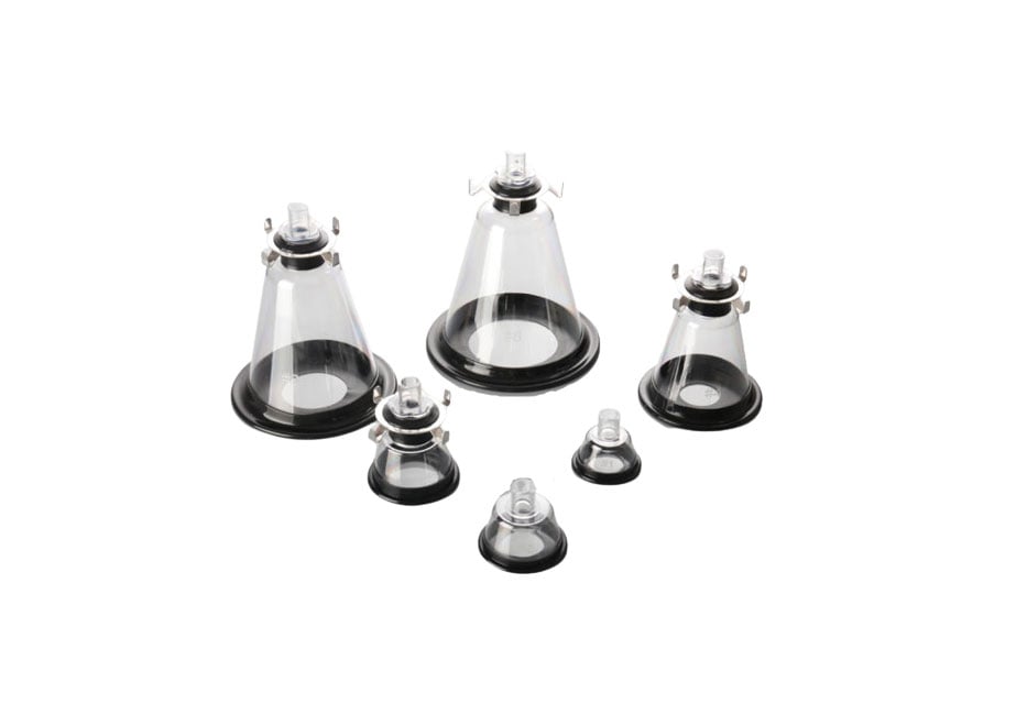 - XL: diafragmas atvērumu Ø 7,5 cm, ar kakla fiksatora. Augstums 14,0 cm, ārējais Ø 13,8 cm, 15 mm augšējais vīrišķais savienotājs.