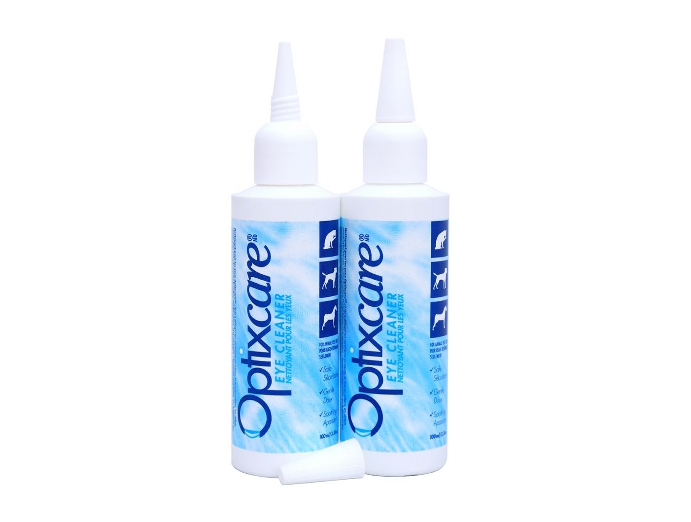 Šķīdums asaru traipu, sakaltušu izdalījumu un netīrumu notīrīšanai ap dzīvnieka acīm.