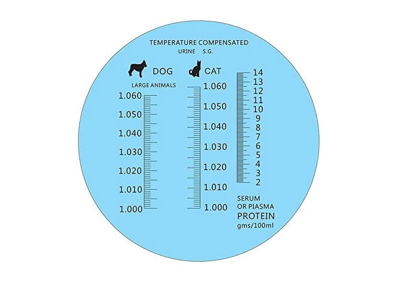 Klīniskais refraktometrs seruma olbaltumvielu un urīna īpatnējā svara mērīšanai.
