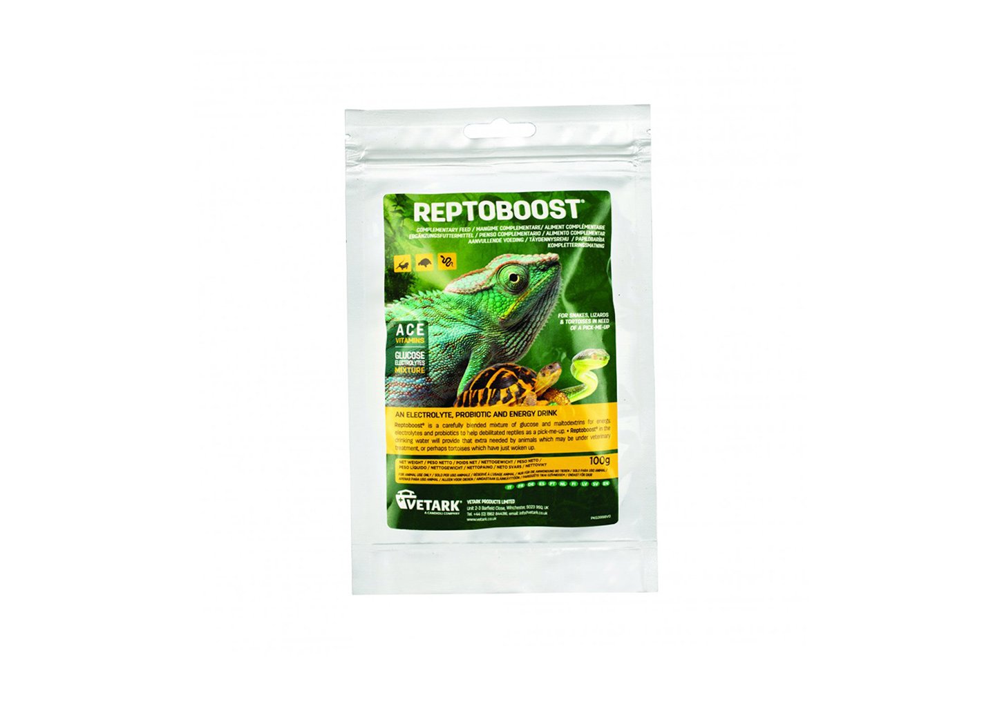 Reptoboost ir rūpīgi sajaukts glikozes un maltodekstrīnu maisījums, kas nodrošina enerģiju, elektrolītus, vitamīnus un probiotikas novājinātiem rāpuļiem, kam vajadzīgs uzmundrinājums.