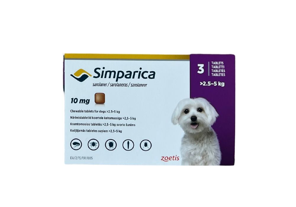 Simparica 10mg košļājamās tabletes suņiem ar svaru 2.5-5kg, N3
