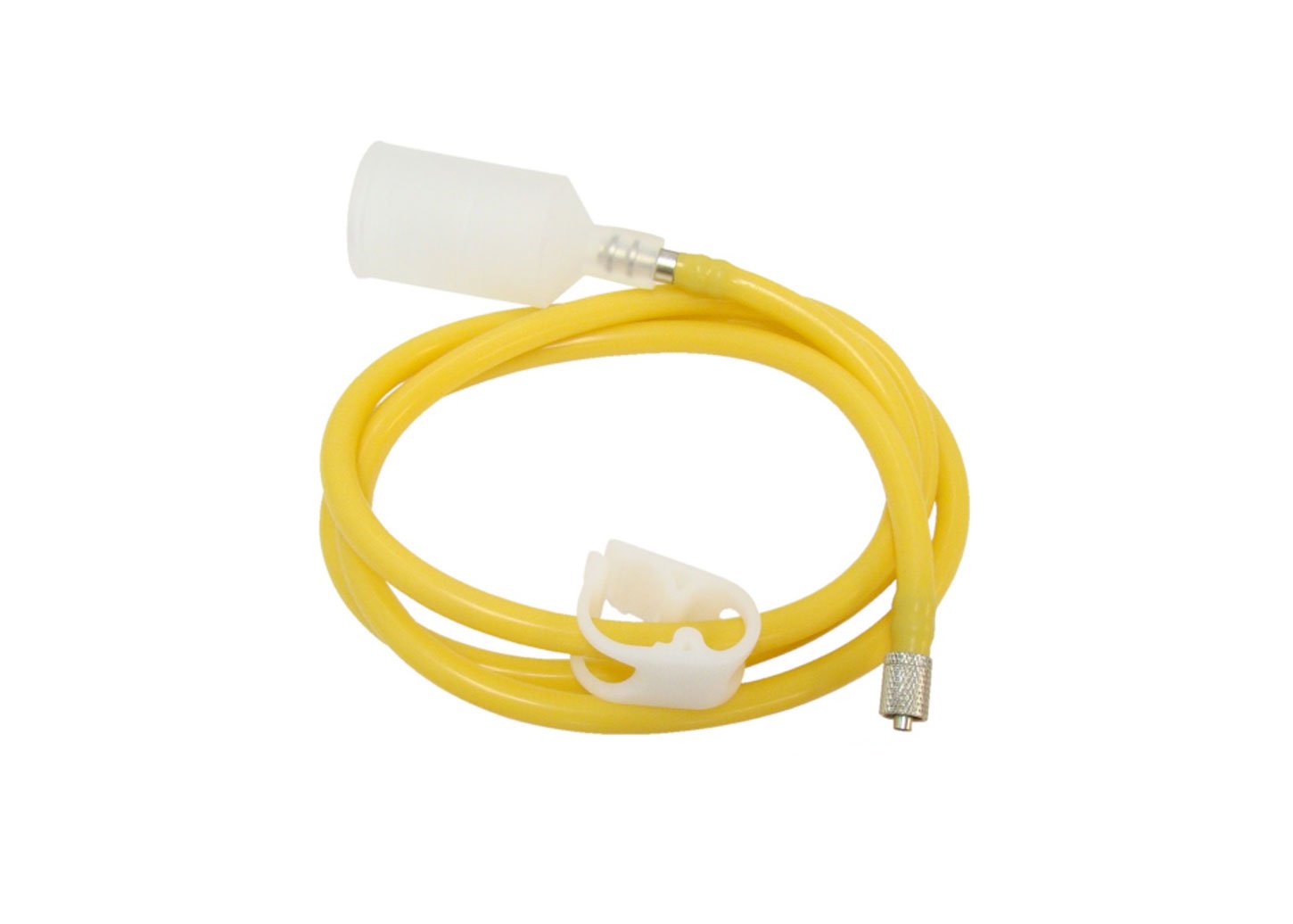 Pudeļu turētājs ar ventilācijas atveri, kas piestiprināts pie 48 collu medicīniskā silikona caurules.