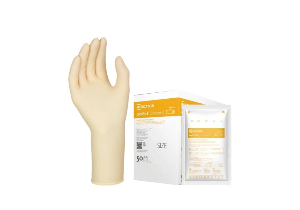 Sterili ķirurģiskie cimdi vispārējām procedūrām, izgatavoti no dabīga lateksa, pūderēti. Elastīgais materiāls lieliski pieguļ plaukstai un sniedz komfortu darba laikā.