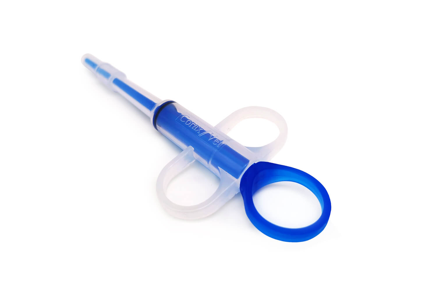 - Novietojiet devēja galu uz dzīvnieka mēles saknes un bīdot virzuli ar ātru kustību ievadiet tableti ar ūdeni.