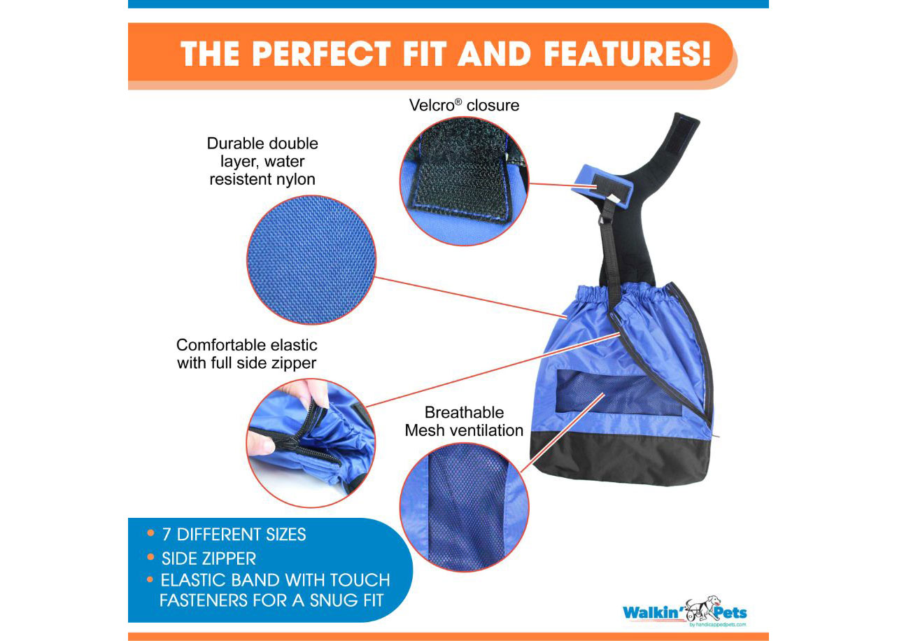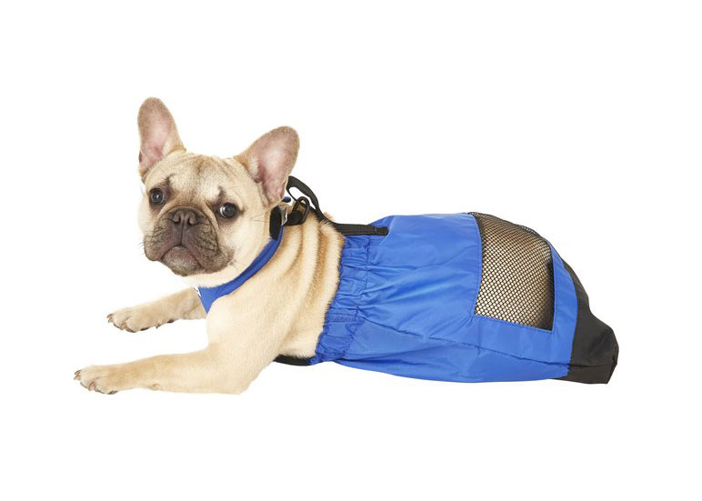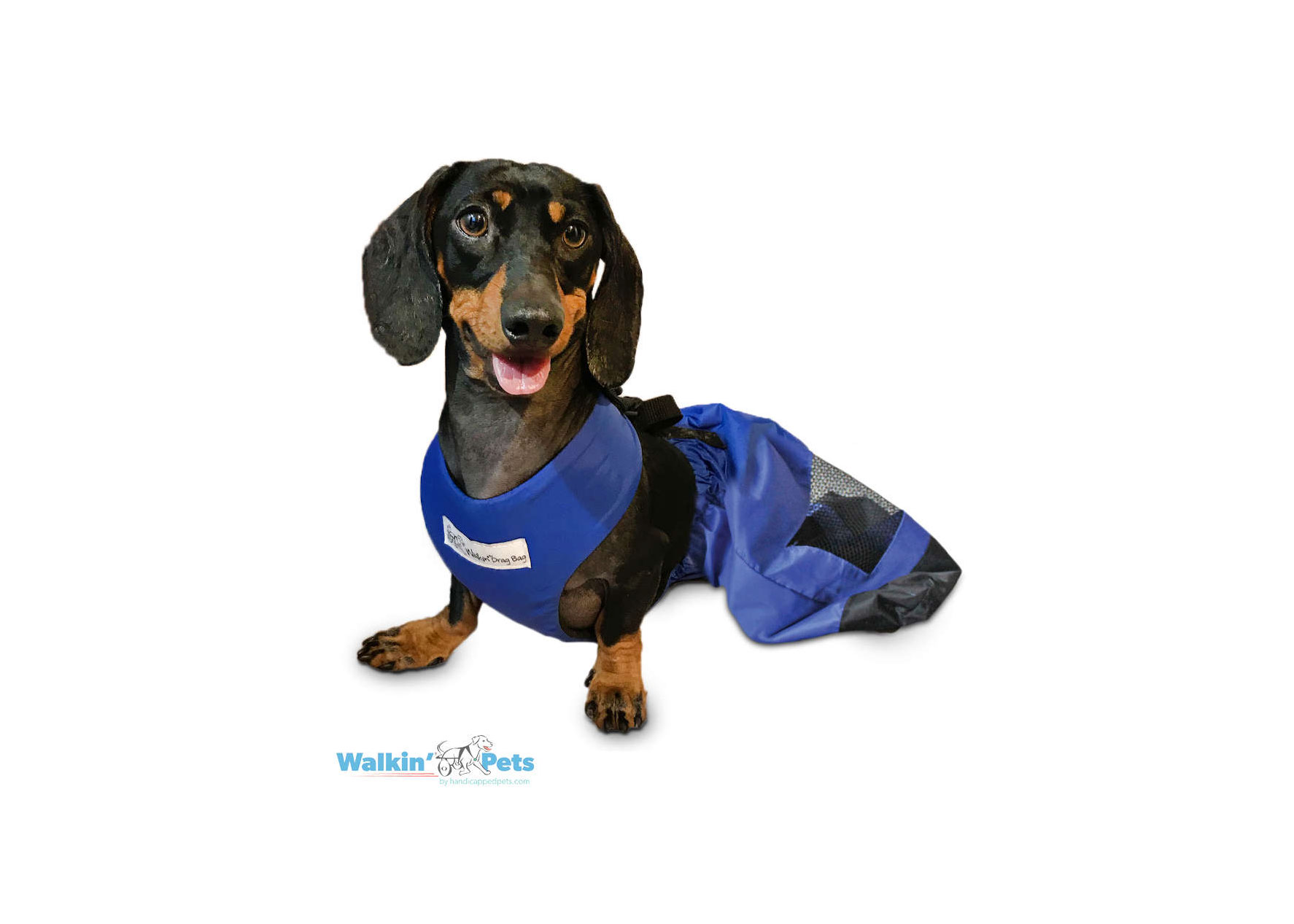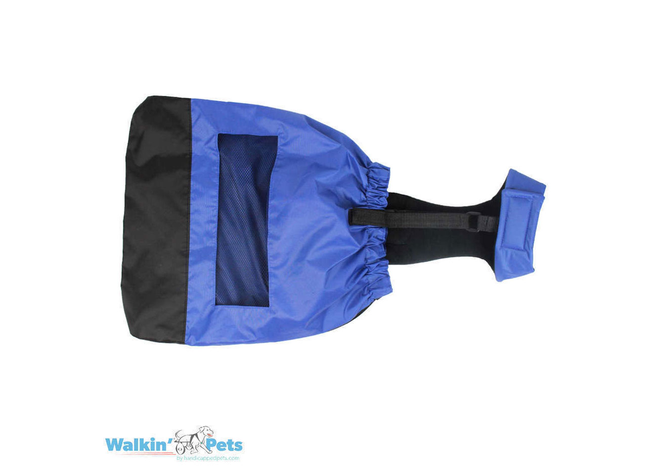 Walkin’® vilkšanas soma ieskauj dzīvnieka paralizētās ķermeņa daļas un nodrošina barjeru, aizsargājot aizmugurējās ekstremitātes un krūtis no skrāpējumiem pret grīdas segumu, kad dzīvnieks nav ratiņos.