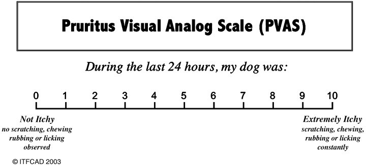 PVAS sastāv no 10 punktu lineāras skalas, kurā skaitļu vērtības pieagums atspoguļo niezes izpausmju smagumu.